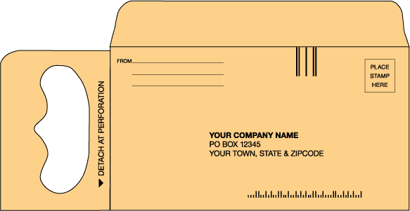 (stamp placemarker, return address lines and "detach at perforation" are pre-printed)